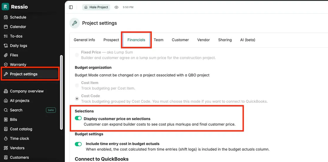 ✨ Show Customer Price on Selections for Cost Plus Projects